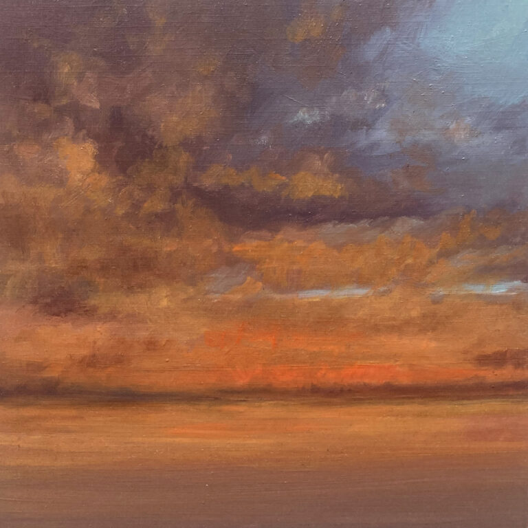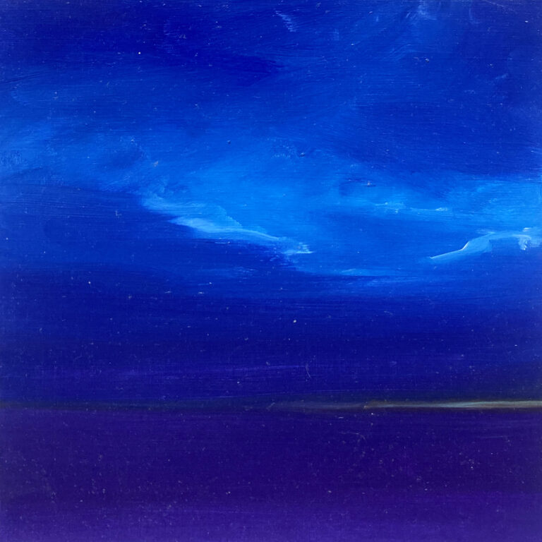 La vision des paysages de l’artiste varient au rythme des changements du temps : bourrasques, ciels chargés, éclaircies soudaines, vents invisibles mais insistants. Ces états atmosphériques sont à notre image. Ils traduisent nos propres fluctuations intérieures, nos passages de l’agitation à l’apaisement, du doute à la clarté. Le paysage devient miroir, non pas de ce que nous voyons, mais de ce que nous traversons.